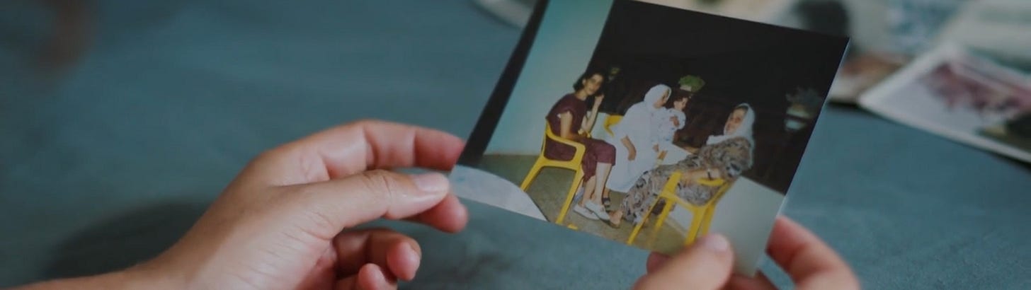 O luto é uma forma de reunião e rememoração para uma família fragmentada, como é fragmentada a história de seu próprio povo — frente à tristeza da perda da matriarca, as irmãs cantam enquanto veem fotos antigas, novamente embolando as temporalidades através dos registros memoriais. É assim que a parede da casa de Nemat começa a se transformar num grande museu da família, enquanto chega um banquete. A foto final desse encontro celebra as quatro gerações de mulheres e ainda se posiciona frente ao “[…] imaginário orientalista de harém” (Shohat, 2020, p. 81, tradução minha), reiterando o papel peculiar que elas têm na construção do imaginário da identidade palestina através de suas histórias pessoais que, a partir de 1948, são totalmente engendradas pelo sionismo — mas, é sempre importante lembrar, jamais subjugadas. As fotos e o filme de Lina — uma exilada de terceira geração para quem o trauma foi transmitido, mas não vivido — são uma lembrança da complexidade e da multifacetação do trauma palestino e da formação de seu caráter em relação ao sionismo, uma lembrança do que é ser palestina enquanto se viveu (e vive) sob um projeto colonial (Shohat, 2020).