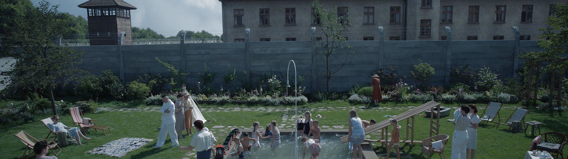 Além de tudo, é notável (e um tanto inócuo) o esforço que Glazer faz de se afastar de convenções dessa gramática para que jamais se cogite afirmar que o filme humaniza nazistas e suas atrocidades, notadamente em Auschwitz, tema do filme. É notável pois temos inúmeros exemplos de filmes que, em nome de uma suposta proteção à memória de quem sofreu ataques, torturas e assassinatos crueis como os perpetrados por nazistas, acabam dando uma volta de 360º e transformando seus agentes em gente-como-a-gente, que apenas seguiram ordens da mente maligna e nefasta de Adolf Hitler1. Para não cair nesse buraco, Glazer literalmente afasta sua câmera da família Höss, cujo patriarca é um alto-oficial da SS alemã e tem como incumbência principal otimizar a produtividade do campo de concentração de Auschwitz — tarefa que ele cumpre com perfeição.