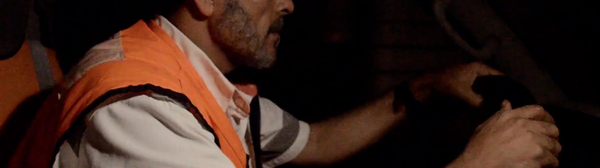 O filme se desenrola quase em tempo real: a rotina de paramédicos do Crescente Vermelho marca o ritmo da câmera de Jabaly; sentimos o cansaço e a resiliência de quem dirige as ambulâncias de um lado para o outro da cidade, resgatando feridos e não feridos, e mortos, muitos mortos. Mártires assassinados por mísseis, drones e metralhadoras israelenses. A urgência dos atendimentos passa pelo dispositivo que o cineasta carrega o tempo todo, acompanhando ora de muito perto os socorristas, ora em planos contextuais que exibem a enorme destruição causada pelo sionismo. A crueza dos acontecimentos se enreda com a narrativa de Jabaly.