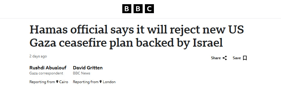 O funcionário do Hamas disse que a proposta não atendia às principais demandas, incluindo o fim da guerra, e que responderia no devido tempo. (Abualouf e Gritten, 2025, online)